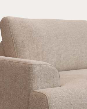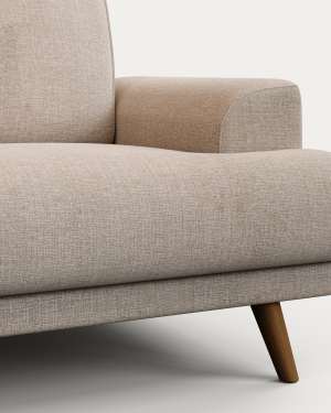 Karin 3-seater sofa beige with solid beech wood legs with natural finish, 231 cm