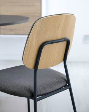 Benilda dark grey stackable chair with oak veneer and steel in black FSC Mix Credit