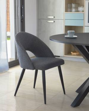 Ciselia chair in dark grey chenille and steel legs with black finish FSC Mix Credit
