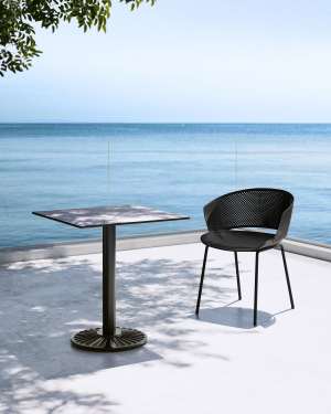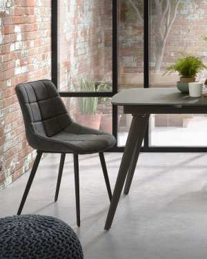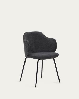 Yunia chair in dark grey with steel legs in a painted black finish FSC 100%
