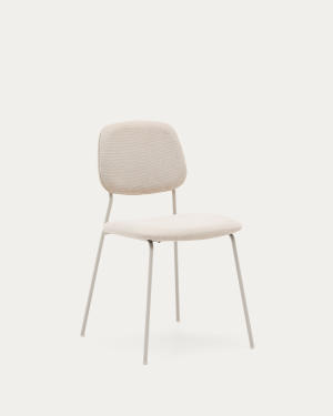 Maina chair in thick beige chenille and steel legs in a beige finish, FSC Mix Credit