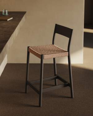 Yalia stool in solid oak wood in a black finish and rope cord, height 65 cm FSC 100%