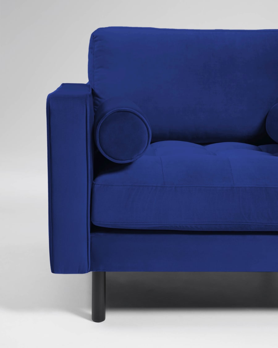 Armchair upholstered with velvet fabric. Backrest removable. Includes two cushions with removable cover. Beech wood legs with wenge finish.