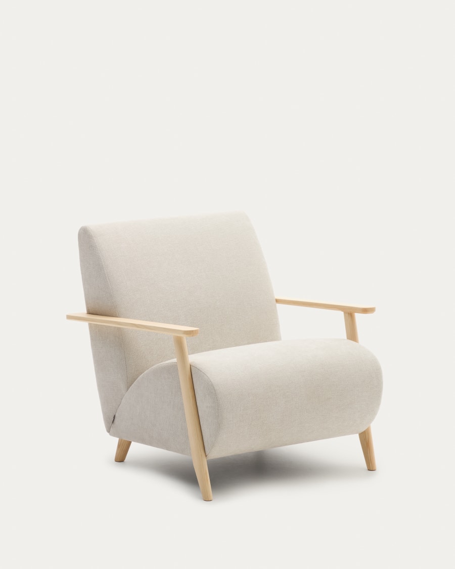 Meghan armchair in pearl chenille and with solid beech wood in a natural finish FSC Mix Credit