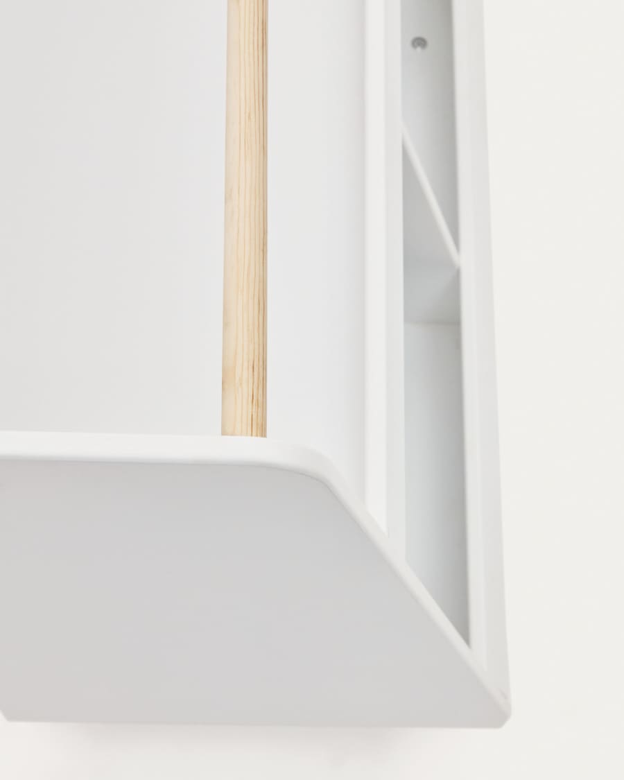 - MDF bookcase with white lacquered finish and solid pine wood legs.